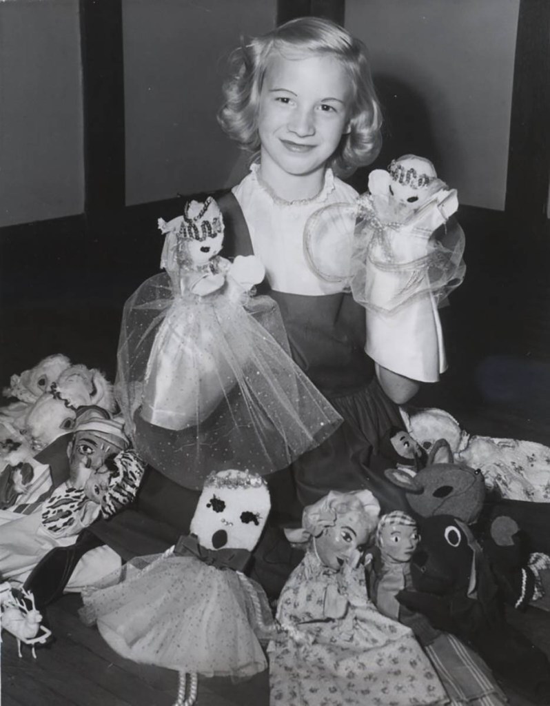 Those childhood memories got revived recently as I was exploring The Strong museum’s collection and I encountered a photo of a girl inside a homemade theater alongside a Santa Claus hand puppet. I especially like the hand-crayoned backdrop behind them, obviously the product of some industrious kid. All of which made me think that these days with a hiatus from school classrooms might provide an ideal opportunity for kids and grown-ups to engage in a little homespun theatrical magic.