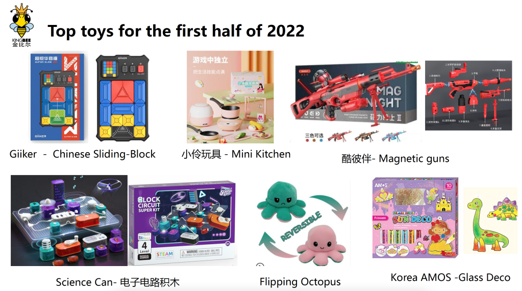 China is the second biggest consumer products market in the world, so we wanted to know what toys are the big sellers in China. We went to King Bee Toys for an answer. KingBee is one of the largest toy distributors in China, and here is what they list as the top-selling toys for the first half of 2022: