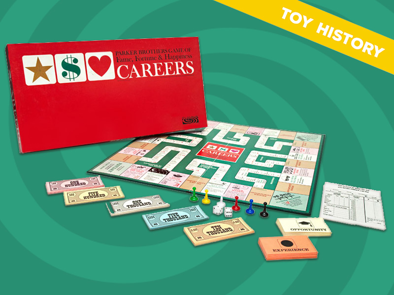 Over its more than 50-year shelf life, Careers has been released in several versions. In each, the available career options have been updated to reflect changing vocational interests of the time. The original version of the game featured occupations in Big Business, College Degree, Politics, Expedition to the Moon, Hollywood, Going to Sea, Farming, and Uranium Prospecting (no, that isn’t a typo!). In the 1970s, the last three of those careers were replaced by Ecology, Teaching, and Sports.