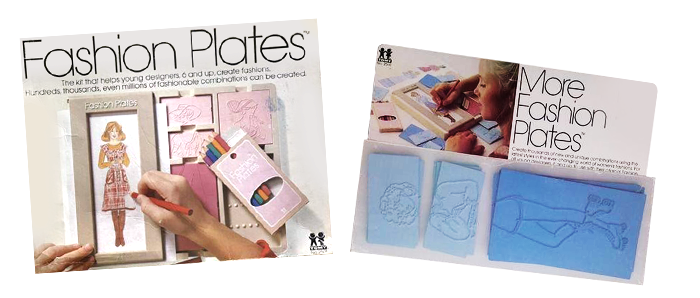 Released in 1978 from Tomy, Fashion Plates allowed budding fashionistas to design their next line of haute couture for the catwalk aka the family bulletin board or refrigerator.