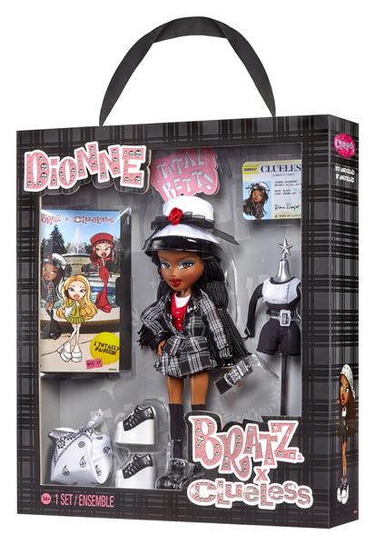 - Dionne Bratz Doll: Concluding the collection on July 31, the Dionne doll showcases her unforgettable plaid and oversized vinyl hat ensemble, alongside the distinctive black-and-white gym class outfit. She also comes with a bandana and chunky wedge sneakers to complete her look.
